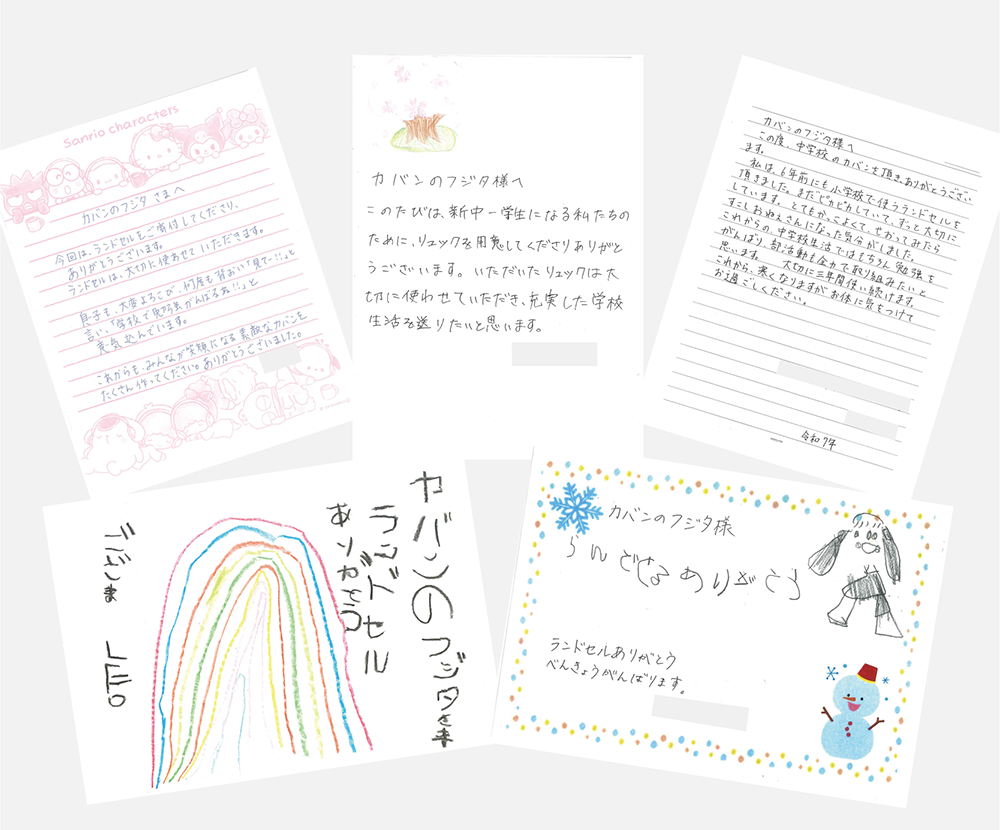 昨年も山形市にランドセルと中学生用カバンを進呈させていただいたところ、お子さまからのお礼のお手紙と、感謝状をいただきました。